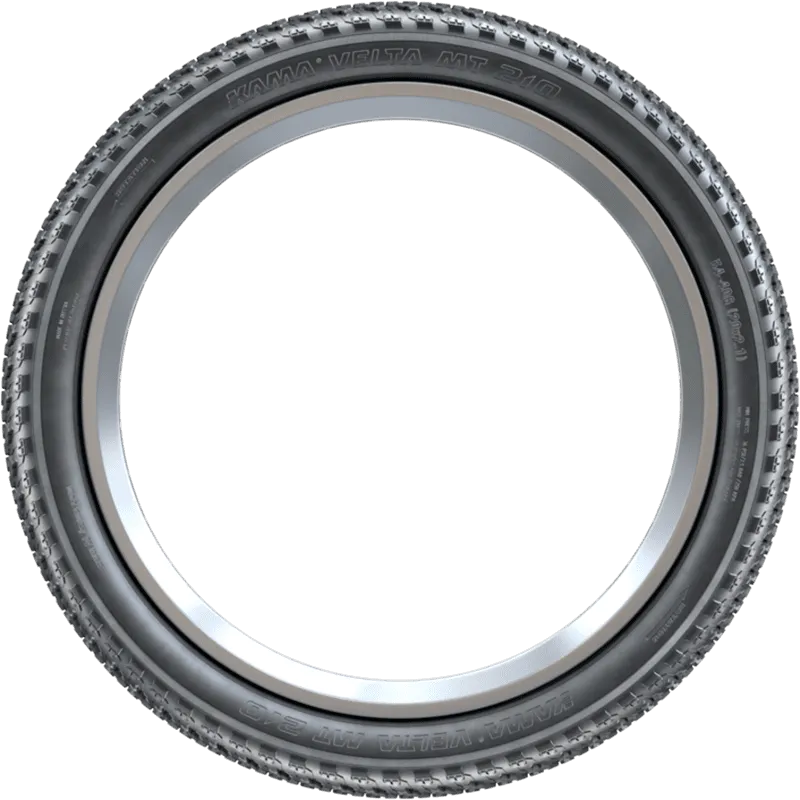 1Дата изготовителя (неделя.год)2MADE IN RUSSIA – название страны-изготовителя3ROTATION – направление вращения шины4KAMA – торговая марка5VELTA MT 210 – торговое наименование шины650-406 (20x2.0) – обозначение типоразмера шины7MIN. PRESS. 36 PSI/2.5 BAR/250 KPA, MAX. PRESS. 65 PSI/4.5 BAR/450 KPA – минимальное и максимальное давление в шине (PSI/BAR/KPA)8www.td-kama.com – сайт изготовителяНаведите курсор на цифру, чтобы узнать подробнее
